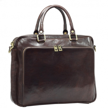 Geanta dama pentru laptop din piele naturala de bovina, un compartiment principal, in interior avem un buzunar special pentru laptop de 15, un buzunar interior inchis cu fermoar, un buzunar pe fata gentii inchis cu fermoar, un buzunar posterior, inchidere cu fermoar, curea de umar din piele naturala, reglabila si detasabila.Fabricata in Italia.Dimensiuni;39x10x31