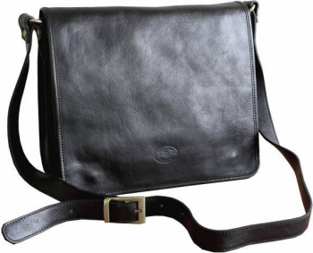 Geanta de umar, messenger, din piele naturala, doua compartimente, un buzunar interior si unul exterior inchise cu fermoar, curea de umar din piele naturala, reglabila, inchidere cu capac si doi butoni magnetici, dimensiuni:30x9x28.Fabricata in Italia.