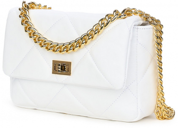 Poseta alba din piele matlasata Greta este un model distins de care te vei indragosti la prima vedere. Este o poseta realizata din piele matlasata moale, de o calitate exceptionala. Accesoriile aurii aduc un aer elegant tinutelor tale. Se poate purta pe brat, in mana sau pe umar.